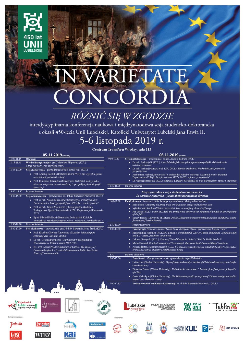 In varietate concordia - różnić się w zgodzie - to temat międzynarodowej interdyscyplinarnej konferencji naukowej, zorganizowanej z okazji 450-lecia Unii Lubelskiej.